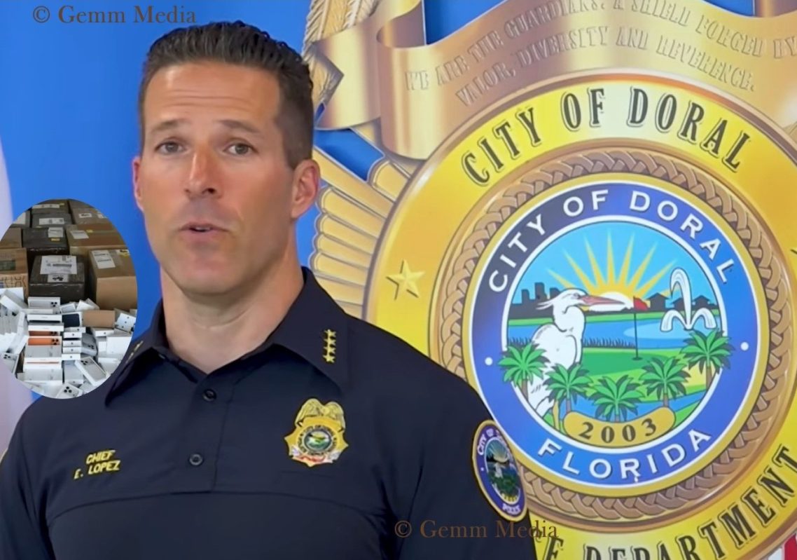 El 19 de marzo, Jeffery Moore, de 61 años, fue arrestado en Doral por el audaz robo y el fraude organizado de iPhones valorados en más de 2 millones de dólares. Su arresto tuvo lugar en el condado de Alachua, al norte de Florida, por la Patrulla de Carreteras de Florida, según informaron las autoridades.