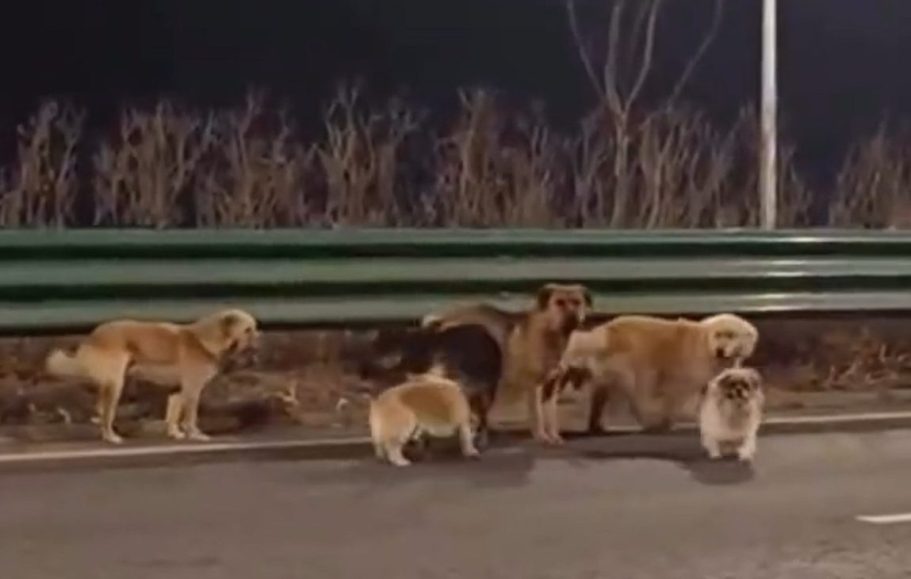 Local reports and security camera footage, including a video recorded on March 16 in Changchun, Jilin Province, show the seven dogs walking together in a group formation along a busy highway in China. The video has gone viral.